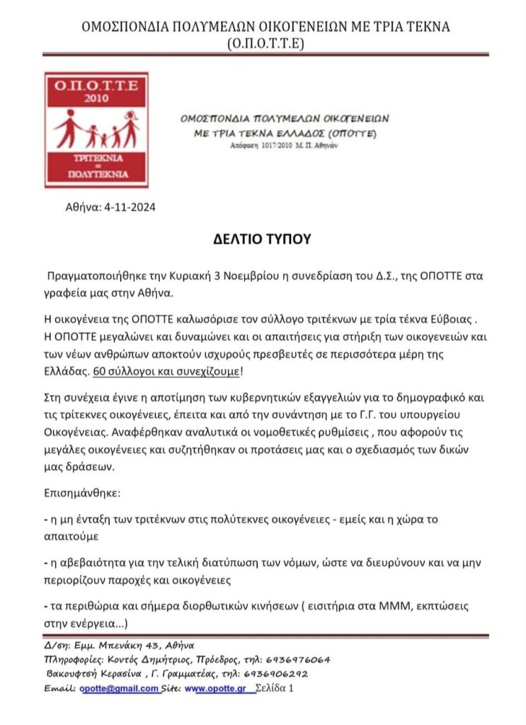 ΔΕΛΤΙΟ ΤΥΠΟΥ